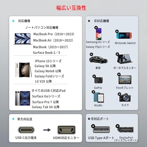 - デメリット:Android端末はDP Alt ModeまたはDeX対応機種に限定されるため、対応機種の確認が必要