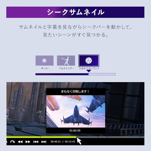 - シークサムネイル表示により、見たいシーンを字幕や画像で直感的に選択可能